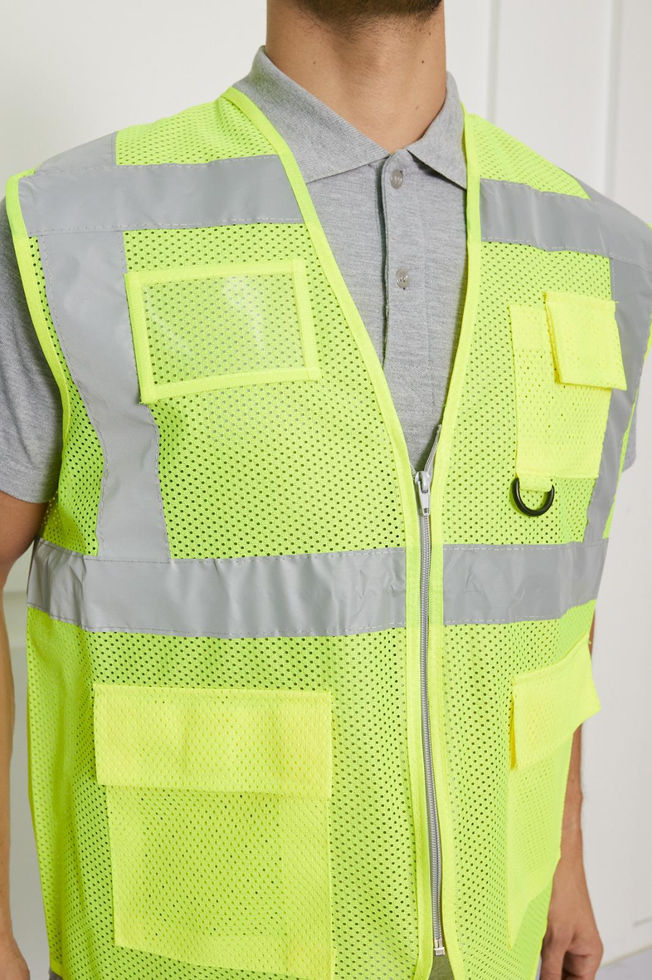 - Bu yelek grubu, yüksek kaliteli sarı renkli kumaştan üretilmiştir ve 360 derece reflektörlü şeritleri sayesinde gece ve düşük ışık koşullarında sizi görünür kılar.